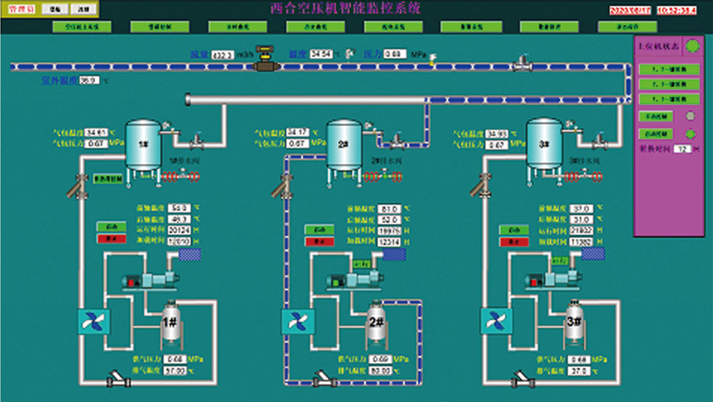 系统对设备进行信息化管理,使设备运行在最佳状态,提高设备的运行效率,减少维护量。空压机实现无人值守全自动化运行。