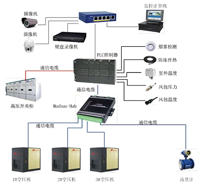 系统具备单机就地控制、单机远程控制、集中控制并且根据工作需要决定空压机工作台数。系统具备就地/集中控制选择功能,可实现控制设备无人值守。