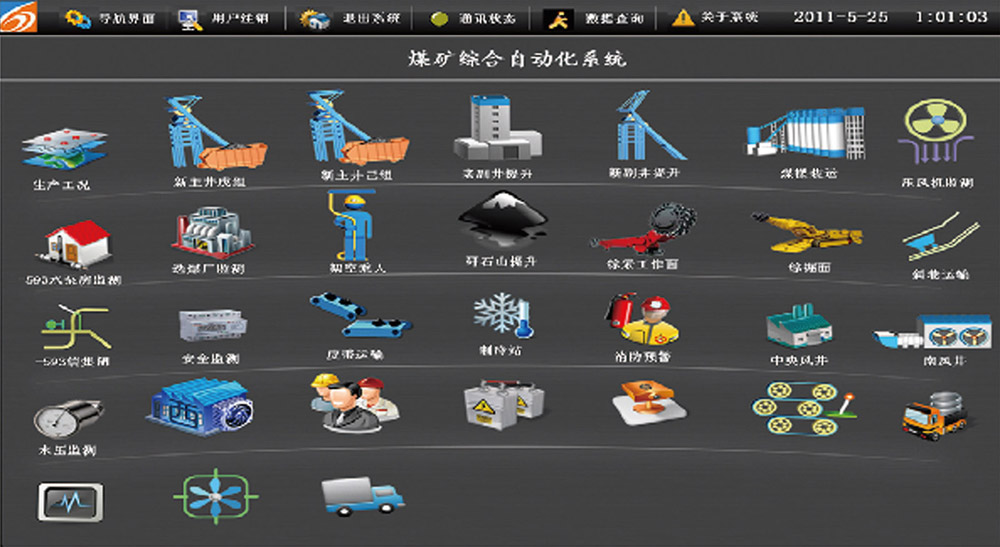 矿山综合自动化管控平台应用先进的自动化控制技术、计算机通信技术、信息网络技术等科技手段,以工业以太环网为核心,将各子系统的数据进行有机整合,进而实现相关联业务数据的综合分以及生产状态的实时评估,实现智慧矿山建设要求,建设煤矿生产管理、安全管理、经营管理—体化的安全、高效的现代化矿井。