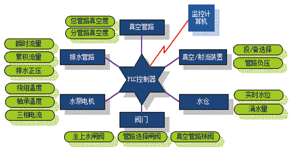 系统具有排水量、有功电量、水泵运行时间等累计量采集、显示及报警功能。