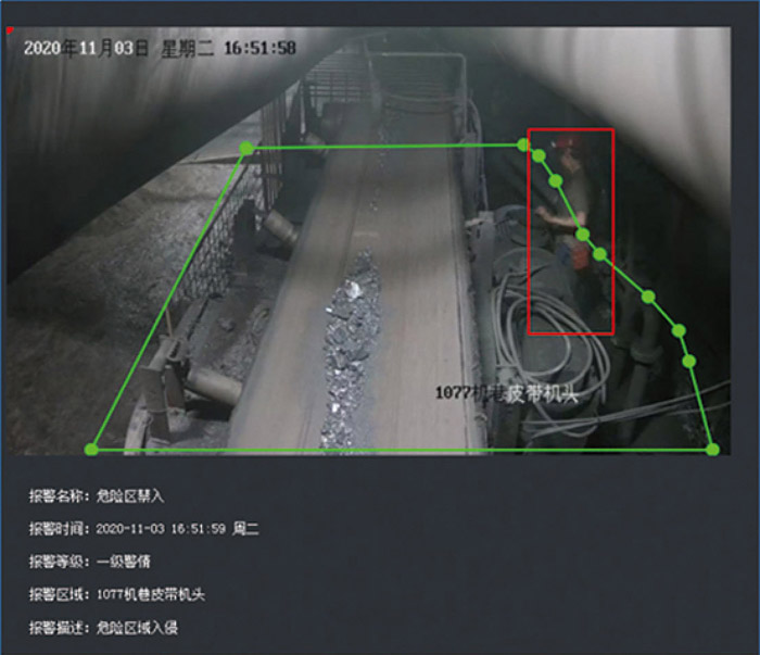 通过划定相关区域来进行区域警戒,当人员进入划定区域后立即语音报警(报警声音可自定义),同时输出干接点信号,可以给出报警信号或直接闭锁设备运行,保证现场安全生产。