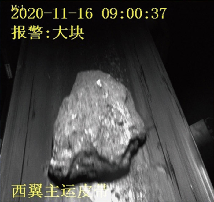 通过大块异物摄像仪实时抓拍皮带上的大块,并根据大块的尺寸进行分类,并将大块的报警信息写入到数据库内,通过客户端可以进行分类统计。
